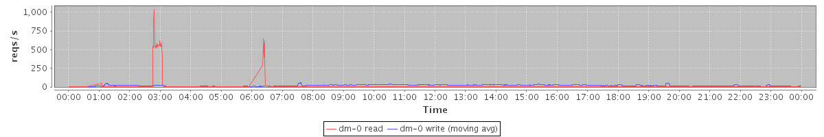 avg(dm-1 read) = 1247.47 avg(dm-1 write) = 134.19
