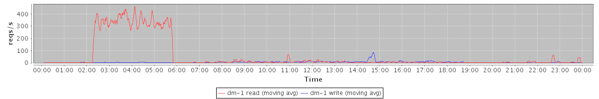 avg(dm-1 read) = 1907.69 avg(dm-1 write) = 146.59
