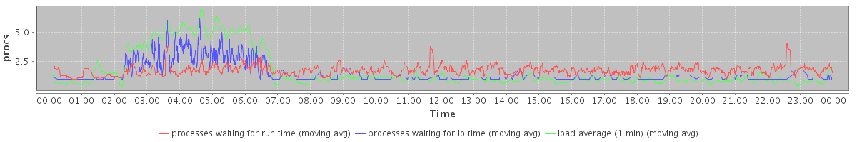avg(processes waiting for run time) = 1.13 avg(processes waiting for io time) = 0.72 avg(load average (1 min)) = 1.70