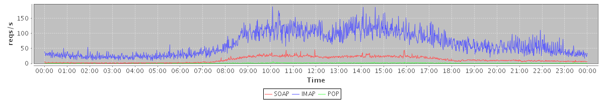 Host zm01.stanford.edu: Mailboxd: Request Rate by Client Protocol