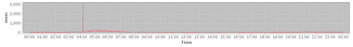 max(SearchRequest) = 249.00 max(MsgActionRequest.delete) = 1266.00 max(NoOpRequest) = 375.00 max(GetInfoRequest) = 487.00 max(WaitSetRequest) = 262.00 max(GetDomainInfoRequest) = 249.00 max(GetFolderRequest) = 272.00 max(SyncRequest) = 482.00 max(AuthRequest) = 485.00 max(GetAppointmentRequest) = 3077.00