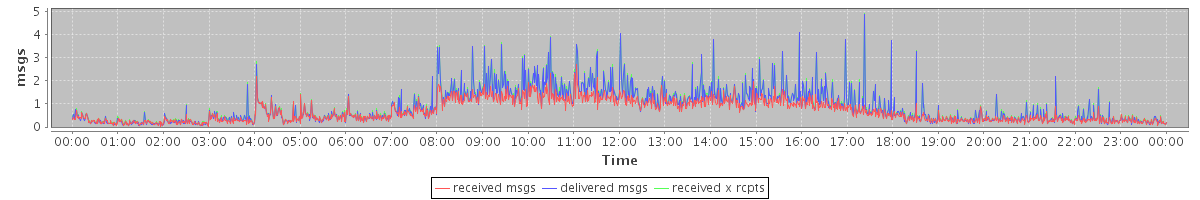 avg(received msgs) = 0.68 avg(delivered msgs) = 0.85 avg(received x rcpts) = 0.88