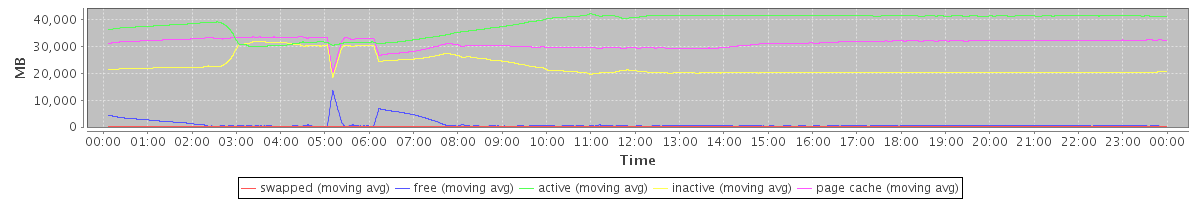 avg(swapped) = 1.73 avg(free) = 987.09 avg(active) = 38698.59 avg(inactive) = 22682.26 avg(page cache) = 31337.61