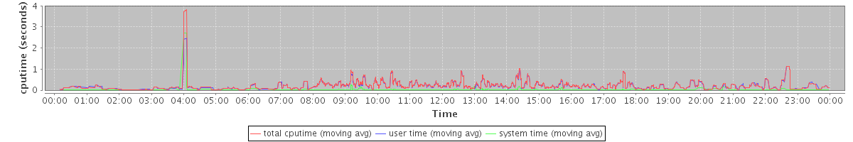 avg(total cputime) = 0.15 avg(user time) = 0.14 avg(system time) = 0.01
