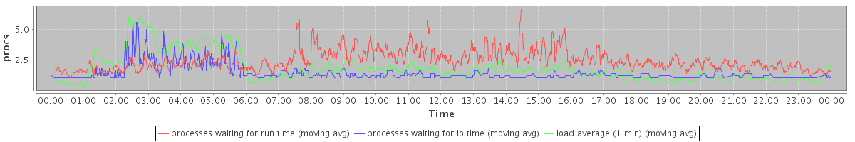 avg(processes waiting for run time) = 2.07 avg(processes waiting for io time) = 0.63 avg(load average (1 min)) = 1.81