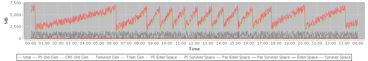 avg(total) = 4374.78 avg(PS Old Gen) = 0.00 avg(CMS Old Gen) = 3448.80 avg(Tenured Gen) = 0.00 avg(Train Gen) = 0.00 avg(PS Eden Space) = 0.00 avg(PS Survivor Space) = 0.00 avg(Par Eden Space) = 784.69 avg(Par Survivor Space) = 141.29 avg(Eden Space) = 0.00 avg(Survivor Space) = 0.00