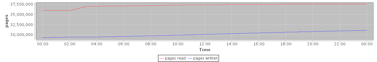avg(pages read) = 37146667.93 avg(pages written) = 30113598.68