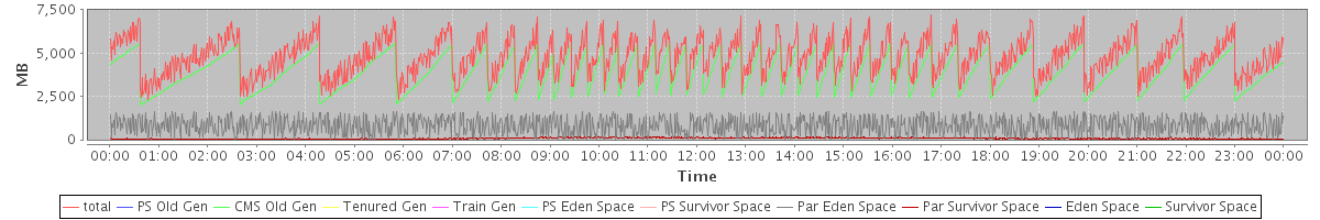 avg(total free) = 3042.02 avg(PS Old Gen free) = 0.00 avg(CMS Old Gen free) = 2138.07 avg(Tenured Gen free) = 0.00 avg(Train Gen free) = 0.00 avg(PS Eden Space free) = 0.00 avg(PS Survivor Space free) = 0.00 avg(Par Eden Space free) = 778.98 avg(Par Survivor Space free) = 124.97 avg(Eden Space free) = 0.00 avg(Survivor Space free) = 0.00