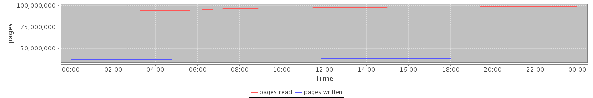 avg(pages read) = 97058512.31 avg(pages written) = 37826695.11