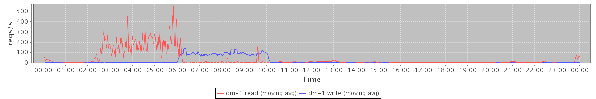 avg(dm-1 read) = 1182.88 avg(dm-1 write) = 497.63
