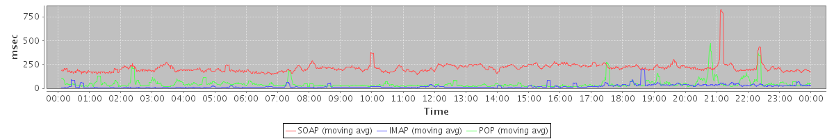 Host zm05.stanford.edu: Mailboxd: Response Time by Client Protocol