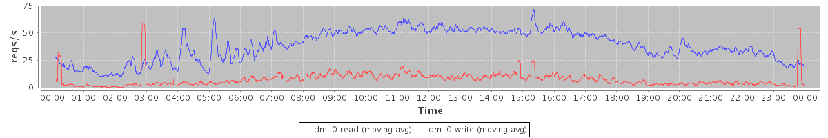 avg(dm-1 read) = 2508.60 avg(dm-1 write) = 146.58