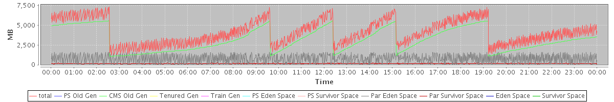 avg(total) = 4110.51 avg(PS Old Gen) = 0.00 avg(CMS Old Gen) = 3150.54 avg(Tenured Gen) = 0.00 avg(Train Gen) = 0.00 avg(PS Eden Space) = 0.00 avg(PS Survivor Space) = 0.00 avg(Par Eden Space) = 803.20 avg(Par Survivor Space) = 156.77 avg(Eden Space) = 0.00 avg(Survivor Space) = 0.00