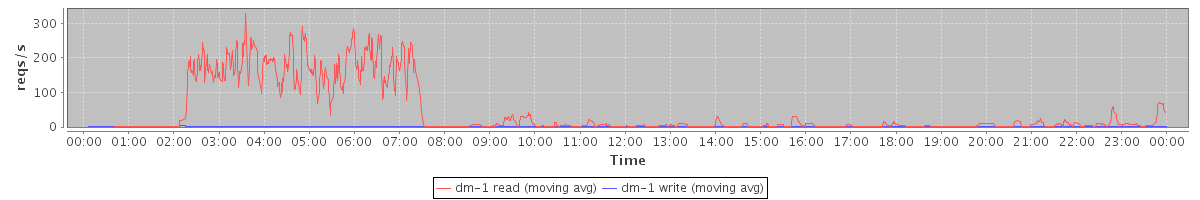 avg(dm-1 read) = 1599.96 avg(dm-1 write) = 88.35