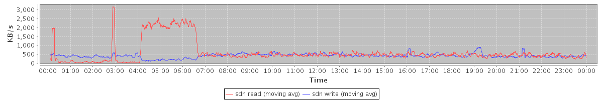 avg(sdb read) = 2595.42 avg(sdb write) = 381.62