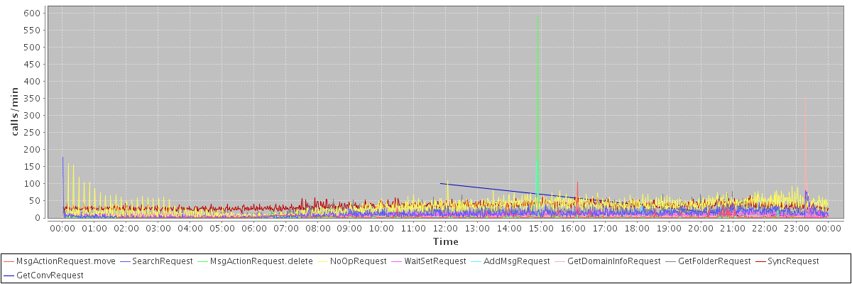max(MsgActionRequest.move) = 104.00 max(SearchRequest) = 177.00 max(MsgActionRequest.delete) = 592.00 max(NoOpRequest) = 160.00 max(WaitSetRequest) = 68.00 max(AddMsgRequest) = 190.00 max(GetDomainInfoRequest) = 354.00 max(GetFolderRequest) = 78.00 max(SyncRequest) = 72.00 max(GetConvRequest) = 100.00