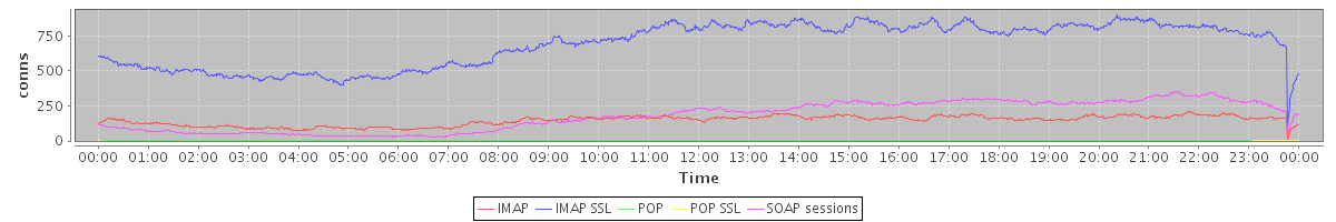 avg(IMAP) = 145.28 avg(IMAP SSL) = 688.23 avg(POP) = 0.04 avg(POP SSL) = 1.49 avg(SOAP sessions) = 178.52