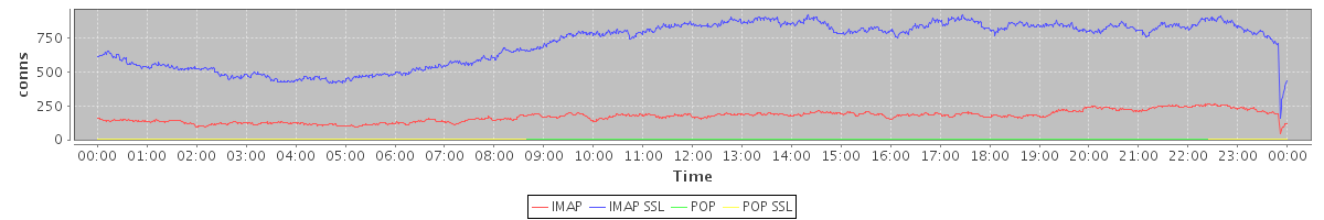 avg(IMAP) = 170.89 avg(IMAP SSL) = 712.03 avg(POP) = 0.00 avg(POP SSL) = 1.48