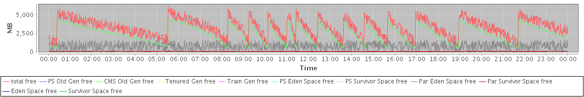 avg(total free) = 3351.24 avg(PS Old Gen free) = 0.00 avg(CMS Old Gen free) = 2493.91 avg(Tenured Gen free) = 0.00 avg(Train Gen free) = 0.00 avg(PS Eden Space free) = 0.00 avg(PS Survivor Space free) = 0.00 avg(Par Eden Space free) = 793.63 avg(Par Survivor Space free) = 63.70 avg(Eden Space free) = 0.00 avg(Survivor Space free) = 0.00
