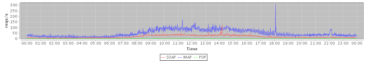 Host zm03.stanford.edu: Mailboxd: Request Rate by Client Protocol