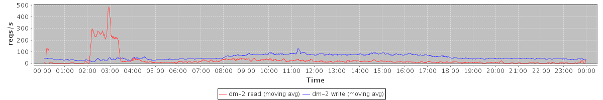 avg(dm-2 read) = 432.71 avg(dm-2 write) = 1159.01