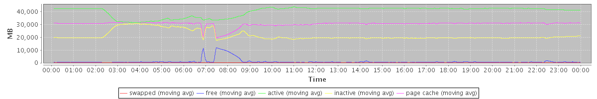 avg(swapped) = 7.73 avg(free) = 1013.83 avg(active) = 40149.03 avg(inactive) = 21363.64 avg(page cache) = 30342.67
