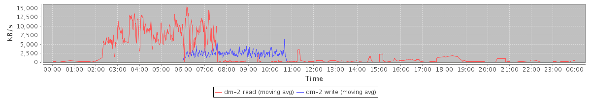 avg(dm-2 read) = 35.88 avg(dm-2 write) = 14.87