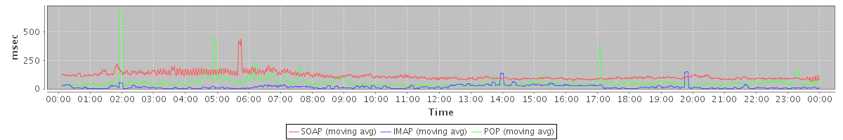 avg(IMAP) = 186.38 avg(IMAP SSL) = 618.80 avg(POP) = 0.01 avg(POP SSL) = 0.44
