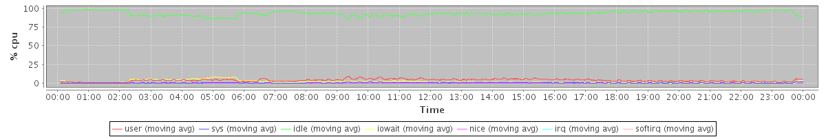 avg(user) = 3.96 avg(sys) = 0.64 avg(idle) = 93.34 avg(iowait) = 1.99 avg(nice) = 0.00 avg(irq) = 0.00 avg(softirq) = 0.07
