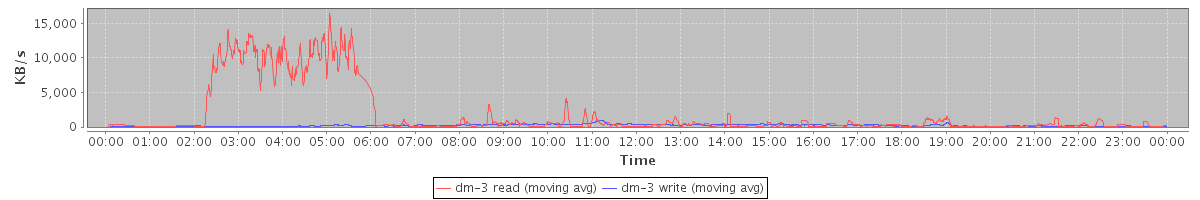 avg(dm-3 read) = 1514.56 avg(dm-3 write) = 222.21