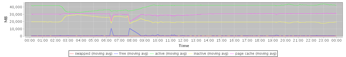 avg(swapped) = 6.08 avg(free) = 795.91 avg(active) = 40536.54 avg(inactive) = 21128.69 avg(page cache) = 30135.23