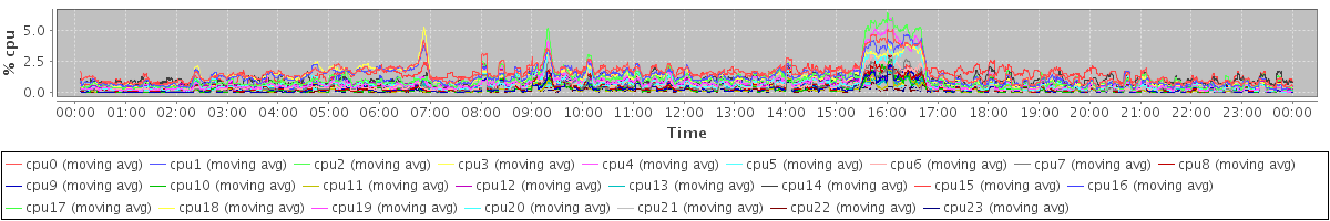 avg(cpu0) = 0.27 avg(cpu1) = 0.21 avg(cpu2) = 0.19 avg(cpu3) = 0.19 avg(cpu4) = 0.13 avg(cpu5) = 0.09 avg(cpu6) = 0.07 avg(cpu7) = 0.05 avg(cpu8) = 0.04 avg(cpu9) = 0.03 avg(cpu10) = 0.03 avg(cpu11) = 0.01 avg(cpu12) = 0.06 avg(cpu13) = 0.03 avg(cpu14) = 0.08 avg(cpu15) = 0.12 avg(cpu16) = 0.05 avg(cpu17) = 0.05 avg(cpu18) = 0.08 avg(cpu19) = 0.05 avg(cpu20) = 0.05 avg(cpu21) = 0.00 avg(cpu22) = 0.00 avg(cpu23) = 0.00