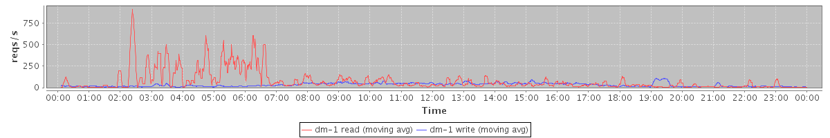 avg(dm-1 read) = 1063.48 avg(dm-1 write) = 454.08