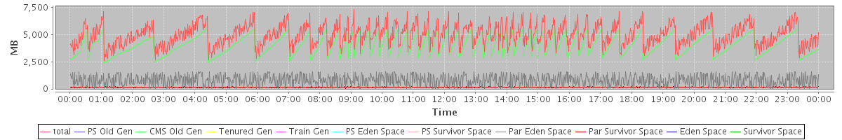 avg(total) = 4978.21 avg(PS Old Gen) = 0.00 avg(CMS Old Gen) = 4024.74 avg(Tenured Gen) = 0.00 avg(Train Gen) = 0.00 avg(PS Eden Space) = 0.00 avg(PS Survivor Space) = 0.00 avg(Par Eden Space) = 801.04 avg(Par Survivor Space) = 152.44 avg(Eden Space) = 0.00 avg(Survivor Space) = 0.00