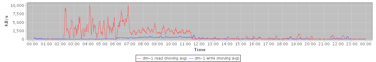 avg(dm-1 read) = 105.32 avg(dm-1 write) = 26.70