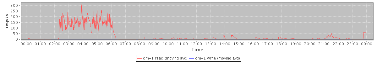 avg(dm-1 read) = 23.82 avg(dm-1 write) = 0.81