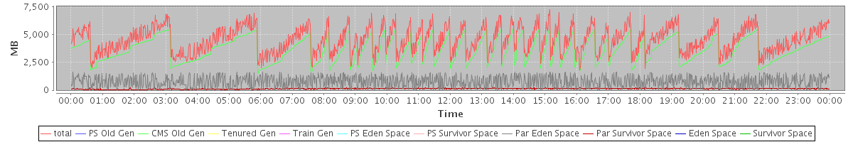 avg(total free) = 3281.51 avg(PS Old Gen free) = 0.00 avg(CMS Old Gen free) = 2391.33 avg(Tenured Gen free) = 0.00 avg(Train Gen free) = 0.00 avg(PS Eden Space free) = 0.00 avg(PS Survivor Space free) = 0.00 avg(Par Eden Space free) = 817.60 avg(Par Survivor Space free) = 72.58 avg(Eden Space free) = 0.00 avg(Survivor Space free) = 0.00