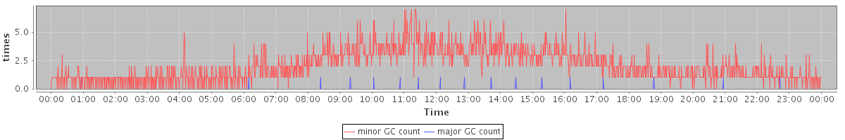 avg(minor GC count) = 2.05 avg(major GC count) = 0.01