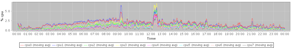 avg(cpu0) = 0.33 avg(cpu1) = 0.36 avg(cpu2) = 0.17 avg(cpu3) = 0.17 avg(cpu4) = 0.12 avg(cpu5) = 0.10 avg(cpu6) = 0.05 avg(cpu7) = 0.06
