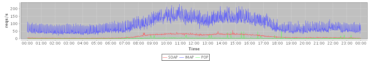 Host zm09.stanford.edu: Mailboxd: Request Rate by Client Protocol