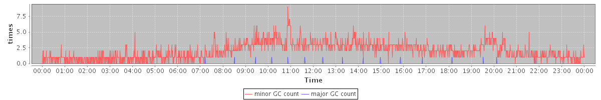 avg(minor GC count) = 1.99 avg(major GC count) = 0.01