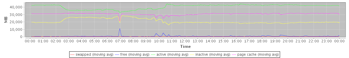 avg(swapped) = 11.74 avg(free) = 811.24 avg(active) = 40579.71 avg(inactive) = 21171.37 avg(page cache) = 30804.68