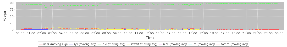 avg(user) = 3.33 avg(sys) = 0.54 avg(idle) = 94.15 avg(iowait) = 1.91 avg(nice) = 0.00 avg(irq) = 0.00 avg(softirq) = 0.06