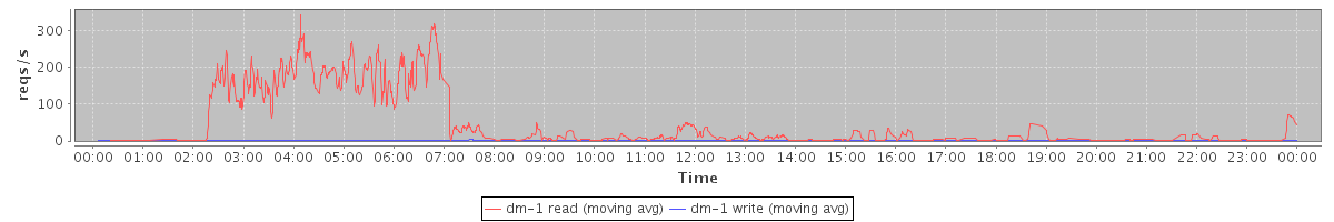 avg(dm-1 read) = 1699.88 avg(dm-1 write) = 104.63