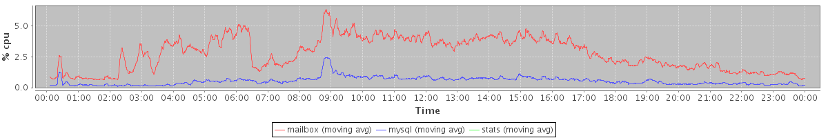 avg(mailbox) = 2.78 avg(mysql) = 0.54 avg(stats) = 0.00