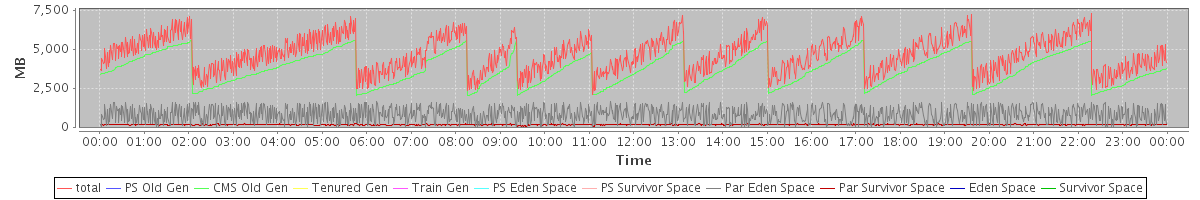 avg(total) = 4680.16 avg(PS Old Gen) = 0.00 avg(CMS Old Gen) = 3719.72 avg(Tenured Gen) = 0.00 avg(Train Gen) = 0.00 avg(PS Eden Space) = 0.00 avg(PS Survivor Space) = 0.00 avg(Par Eden Space) = 810.62 avg(Par Survivor Space) = 149.82 avg(Eden Space) = 0.00 avg(Survivor Space) = 0.00