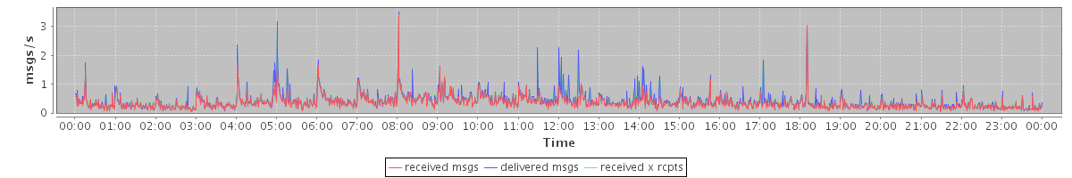 avg(received msgs) = 0.35 avg(delivered msgs) = 0.40 avg(received x rcpts) = 0.41