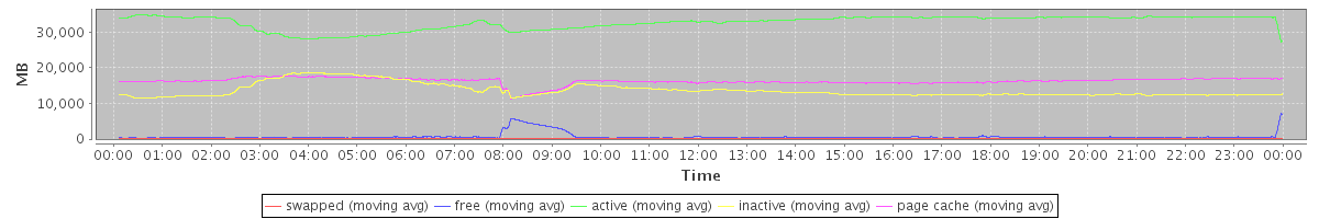 avg(swapped) = 9.38 avg(free) = 666.54 avg(active) = 32590.26 avg(inactive) = 13636.35 avg(page cache) = 16227.72