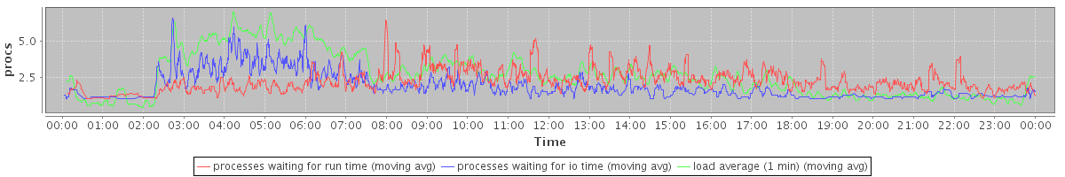 avg(processes waiting for run time) = 1.76 avg(processes waiting for io time) = 1.29 avg(load average (1 min)) = 2.65