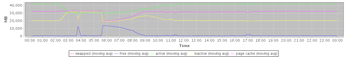 avg(swapped) = 0.33 avg(free) = 1812.84 avg(active) = 38624.04 avg(inactive) = 22167.57 avg(page cache) = 30792.06